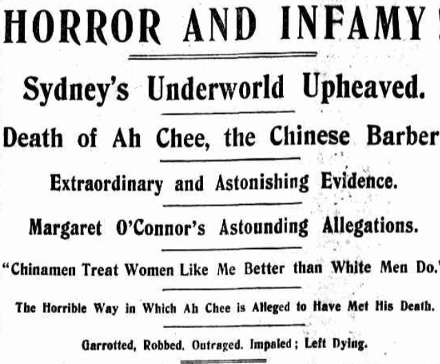 In 2016, I found an article filled with extraordinary amounts of hyperbole about my great-great grandmother, second-generation Irish-Australian, Margaret O’Connor. The article detailed her involvement as a witness for the prosecution in the 1915 murder trial of one of her Chinese clients.